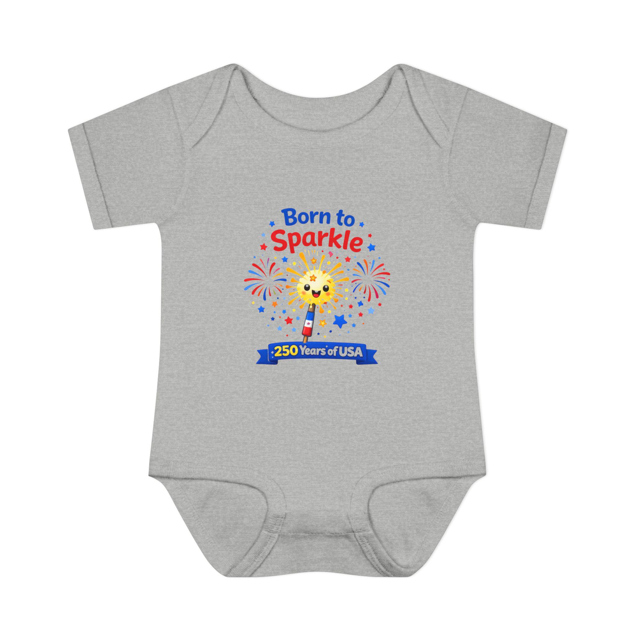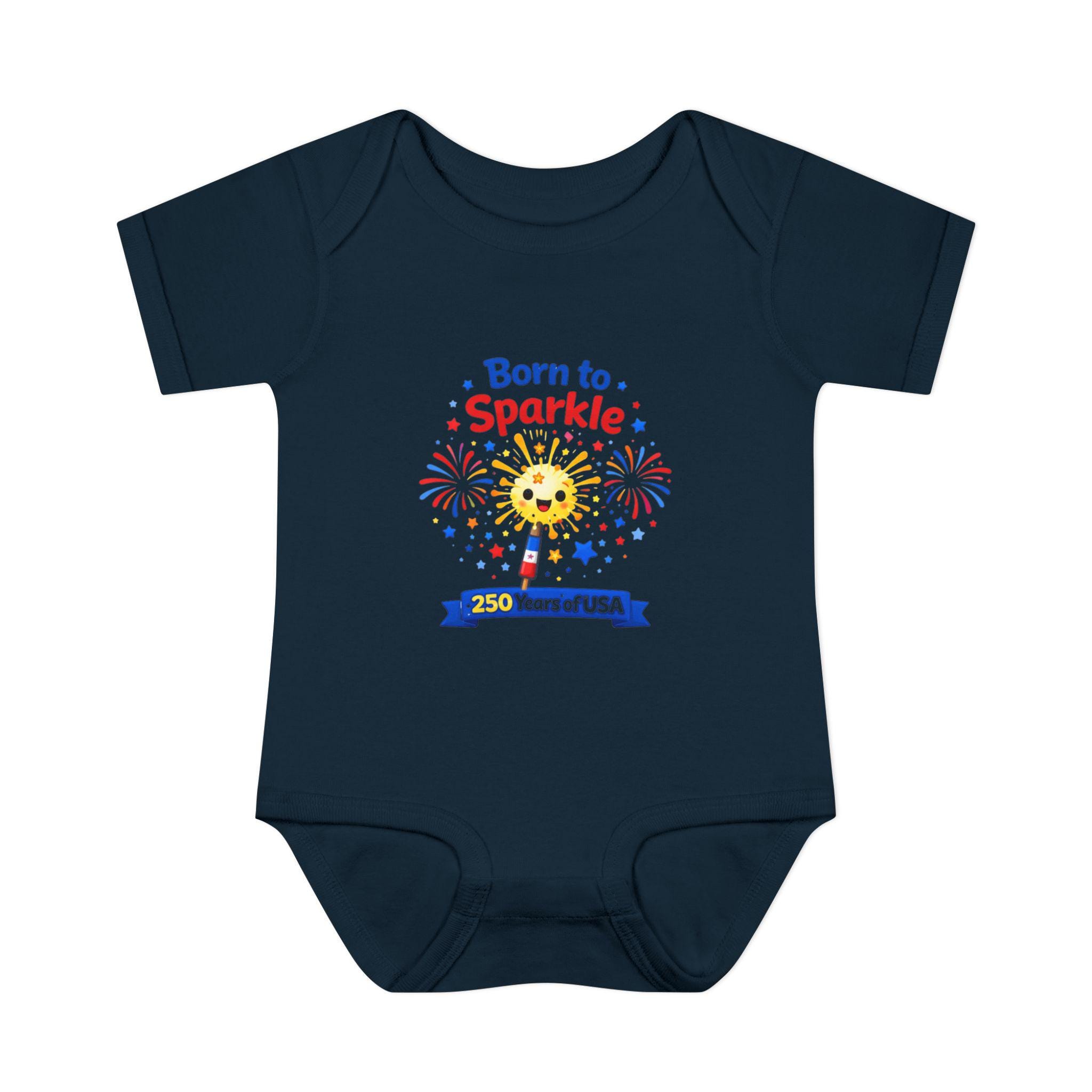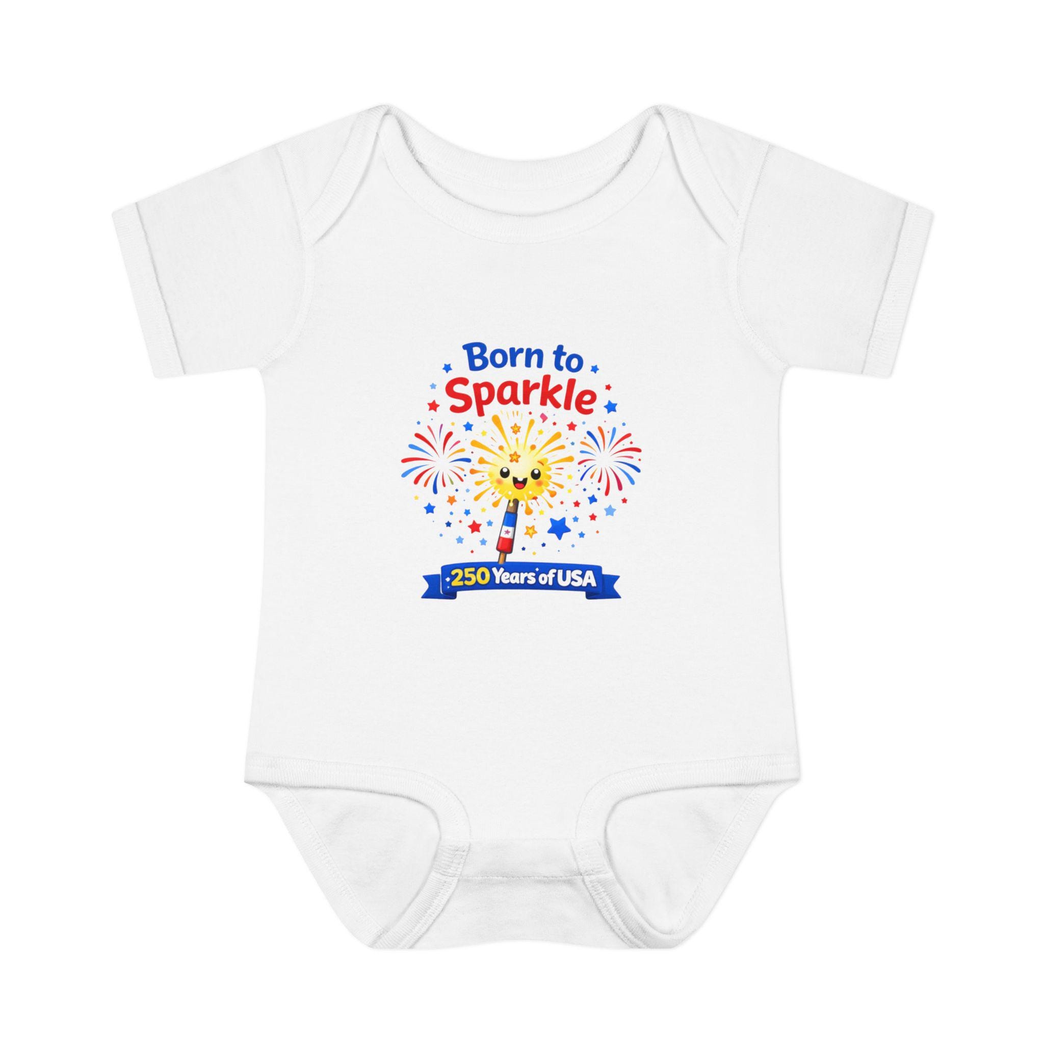Celebrate tiny sparks and big milestones with this soft infant bodysuit. Lightweight rib knit cotton hugs little shoulders while the lap-style neck and three-snap closure make dressing and diaper changes quick and gentle. A cheerful patriotic design — bright fireworks, playful confetti, and a smiling sun — sits at the chest to add festive color without overwhelming the simple white canvas. Breathable fabric and tear-away labeling keep baby comfortable during summer gatherings, parades, or cozy family photos. This bodysuit moves with curious wiggles and holds its shape wash after wash, becoming an easy go-to outfit for warm-weather celebrations and everyday brightness.