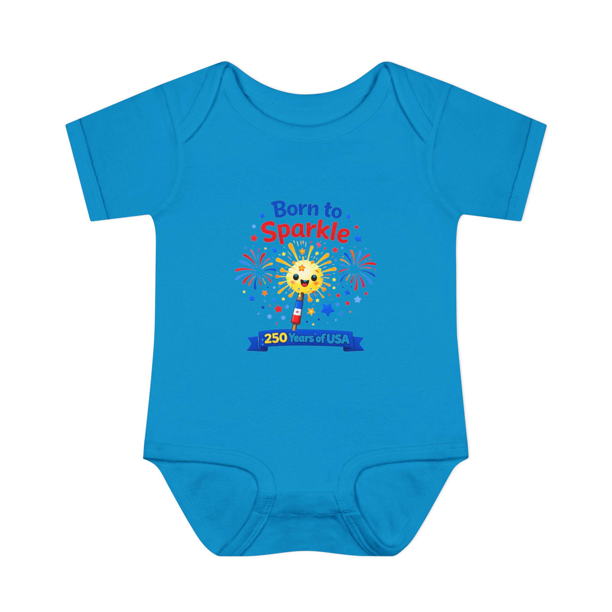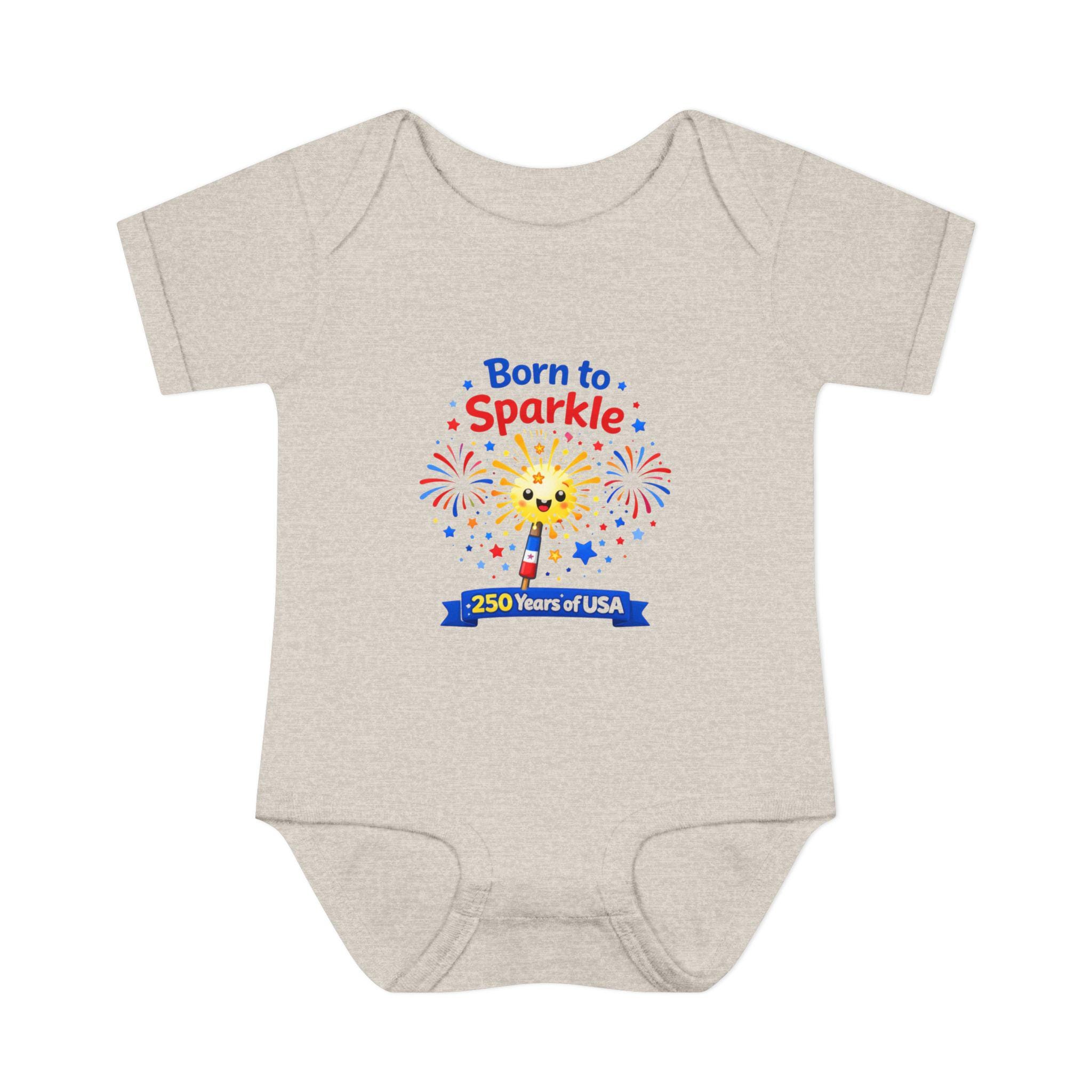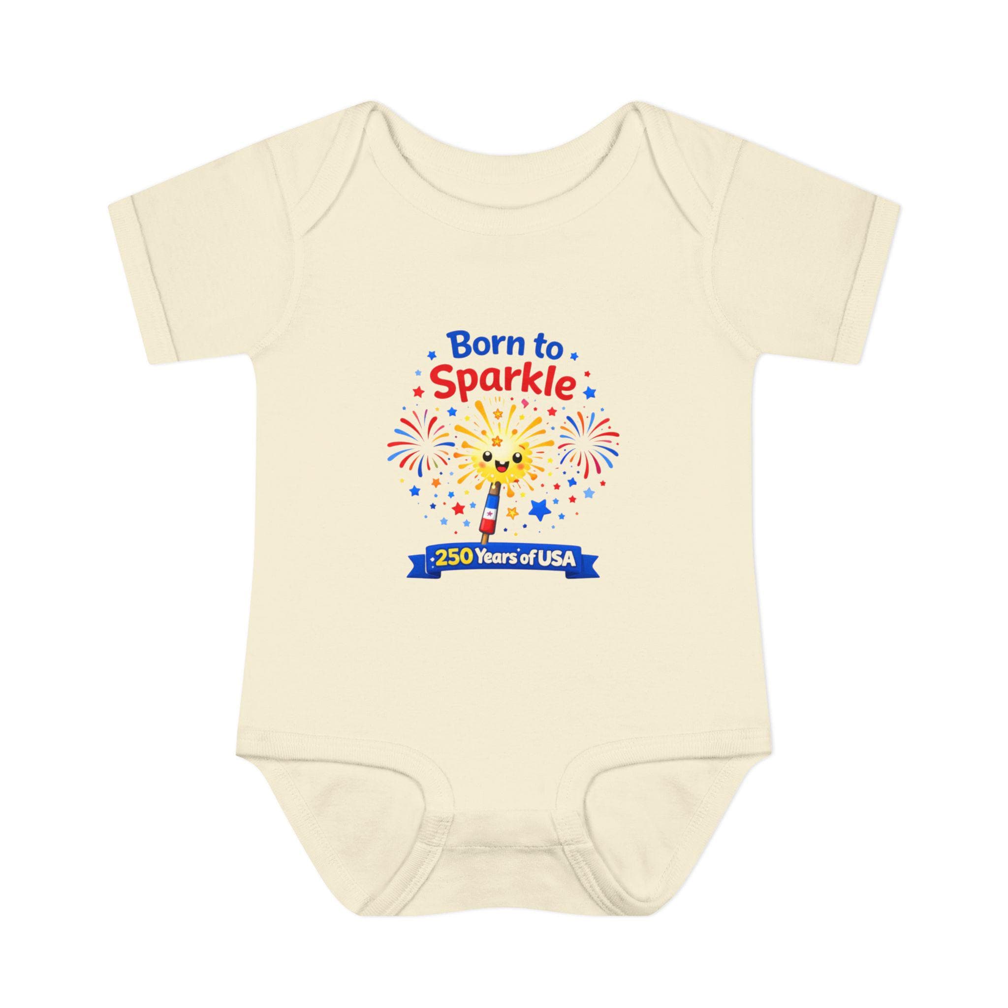 Celebrate tiny sparks and big milestones with this soft infant bodysuit. Lightweight rib knit cotton hugs little shoulders while the lap-style neck and three-snap closure make dressing and diaper changes quick and gentle. A cheerful patriotic design — bright fireworks, playful confetti, and a smiling sun — sits at the chest to add festive color without overwhelming the simple white canvas. Breathable fabric and tear-away labeling keep baby comfortable during summer gatherings, parades, or cozy family photos. This bodysuit moves with curious wiggles and holds its shape wash after wash, becoming an easy go-to outfit for warm-weather celebrations and everyday brightness.