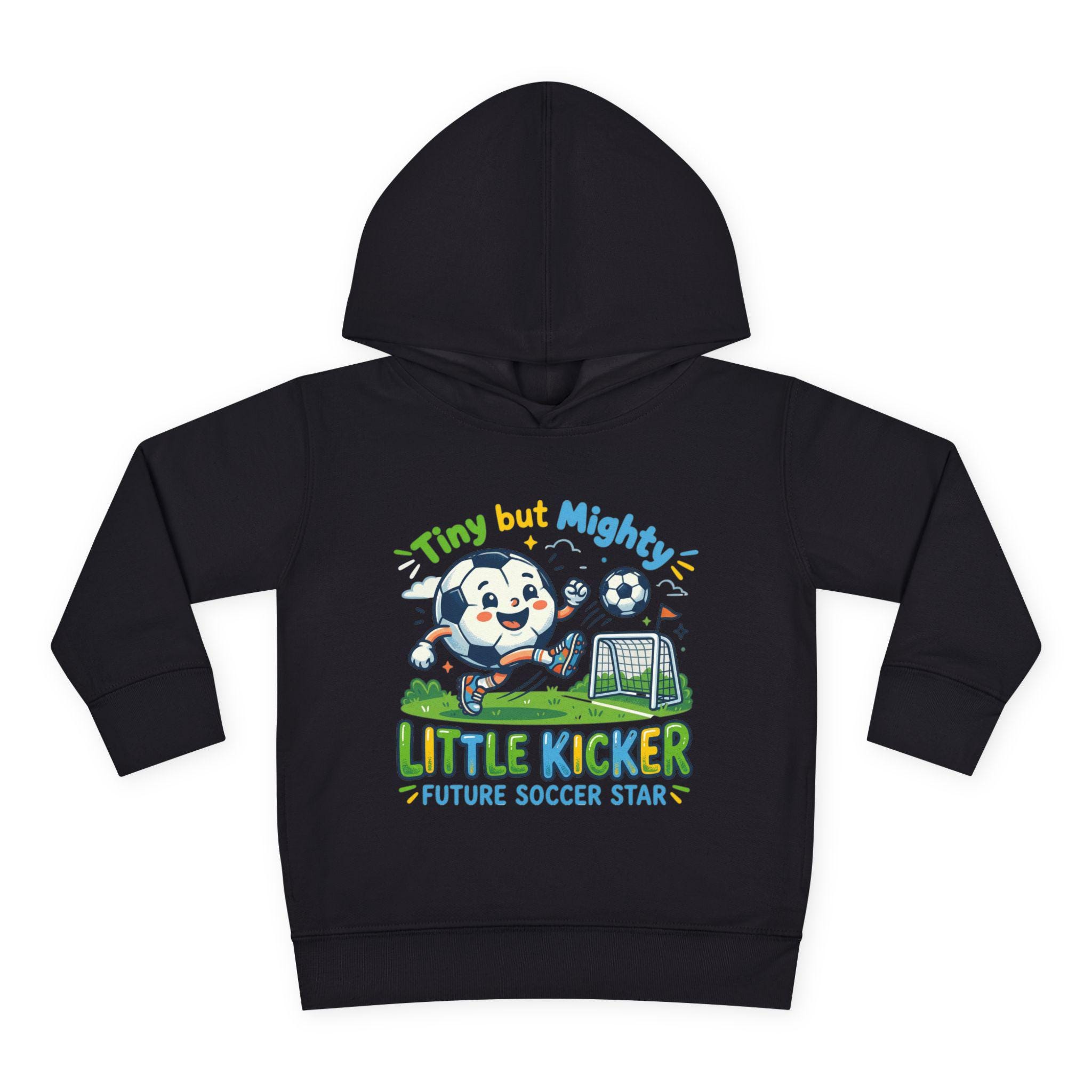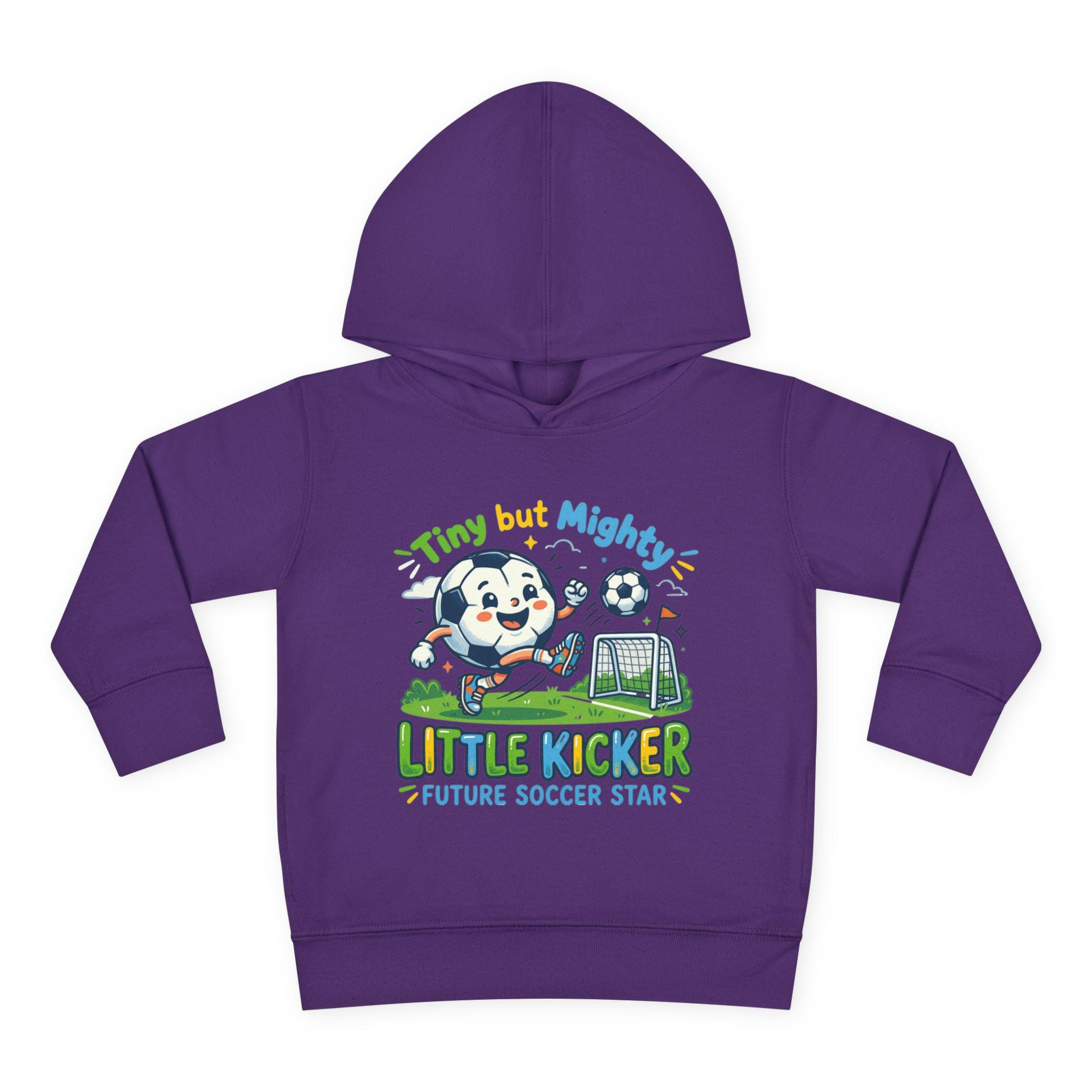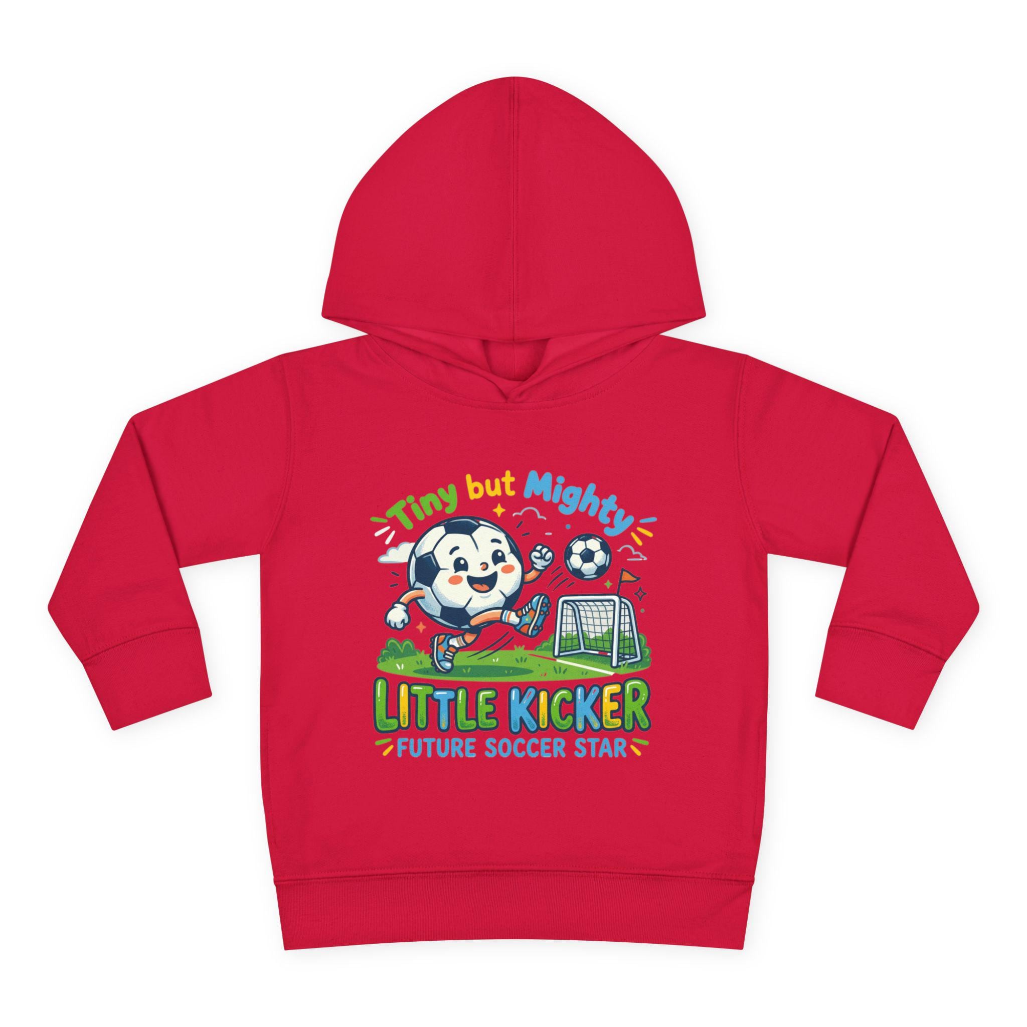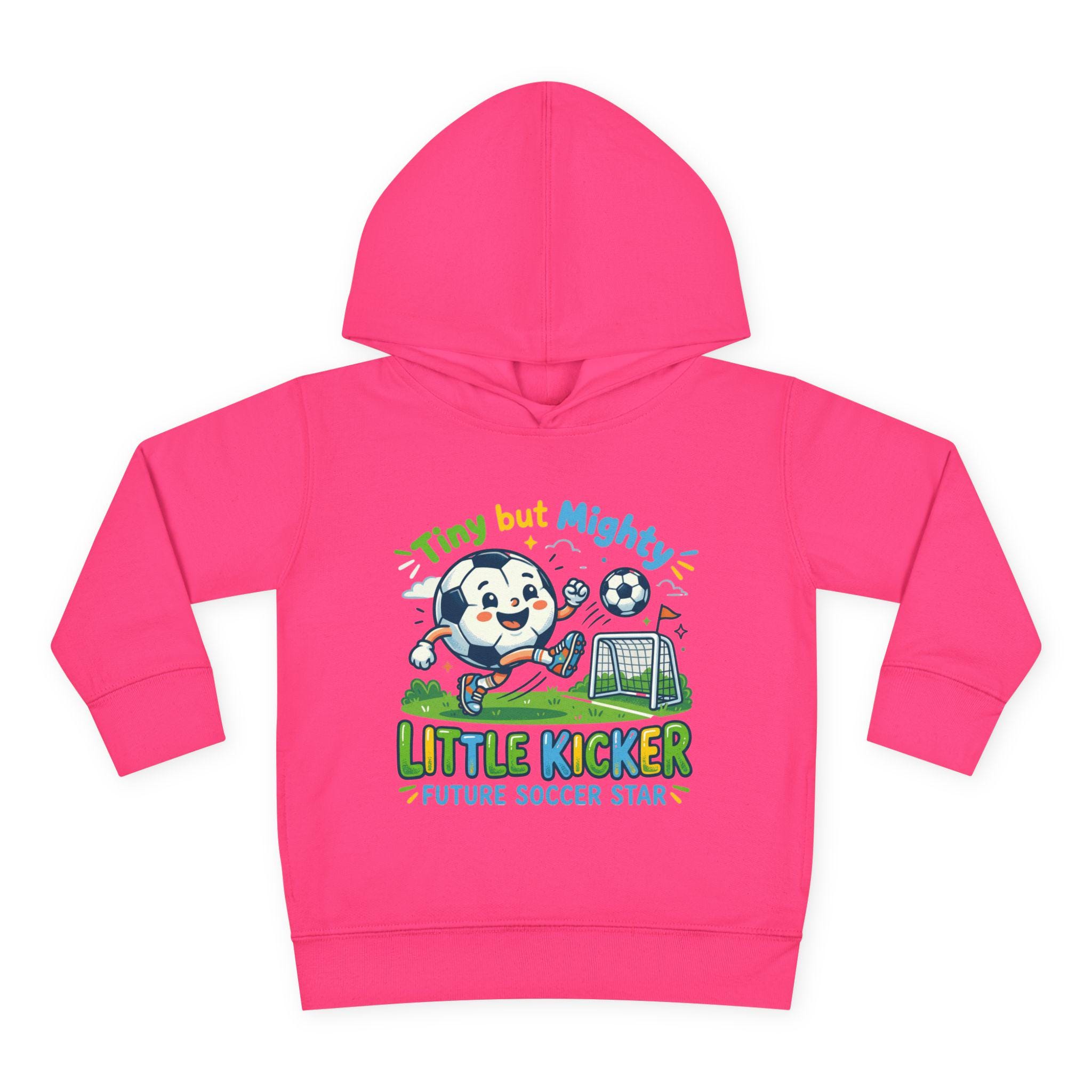 Soft, cozy hoodie made for little players who live for backyard goals and morning practice. The heather-gray pullover features a playful mascot charging a soccer ball toward a tiny net, with bright, kid-friendly lettering that reads “Little Kicker — Future Soccer Star.” Lightweight but warm, the fleece hood and jersey-lined hem keep energy up on chilly runs to practice, while roomy side pockets hold tiny treasures and scraped-knee bandages. It’s designed to move with active toddlers — stretchy ribbed cuffs and a resilient waistband keep the fit in place through tackles, tumbles, and touchdown dances.